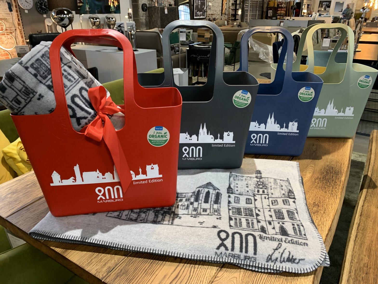 Wir feiern Marburg800! Der lokale Handel beteiligt sich mit extra für das Stadtjubiläum konzipierten Marburg800-Produkten. In der Ketzerbach12 und bei uns bekommt Ihr eine schöne Marburgkolter und einen Marburgshopper lim. Edition 800